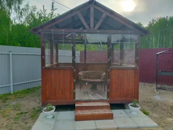 Гибкие окна могут быть выполнены в виде штор ПВХ, которые можно поднимать и опускать по мере необходимости. Это удобно для беседок, террас и веранд, где нужна мобильная защита от ветра и дождя.